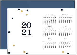 Carte Calendrier 2021 • Pois Dorés et Noirs • Lot de 16 Cartes • Carte 12x17 cm Pliée • 16 Enveloppes Bleu Marine incluses • Popcarte