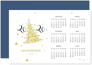 Carte de vœux Calendrier Sapin Étoilé 2020 • Lot de 16 Cartes • Carte 12x17 cm Pliée • 16 Enveloppes Bleu Marine incluses • Popcarte