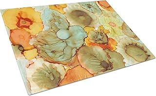 Caroline S Treasures 8969lcb Abstrait Fleurs Bleu Sarcelle et Orange Planche à découper en Verre, Grand, Multicolore
