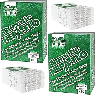 Lot de 20 sacs de haute filteration Hepa pour aspirateur numatic Henry, Hetty, James, Edward et équivalent à style sacs Hepa flo en microfibres