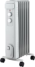 Clatronic RA 3735 7 Radiateur à huile à nervures pour radiateur portable jusqu'à 1500 W, régulation de la chaleur via régulateur de thermostat, utilisation flexible grâce à 4 roulettes légères Blanc