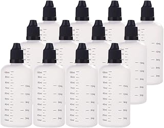 Lot de 10 flacons compte-gouttes vides rechargeables en plastique avec bouchons à vis et bouchons à visser pour produits cosmétiques et huiles essentielles (50 ml)