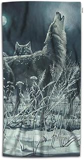 Moslion Wolf Serviettes à main 30 x 15 W Pouces Hurls Moon Peinture numérique Hiver Animaux Danger Ténèbres Groupe Serviettes de cuisine pour salle de bain Polyester Doux Microfibre