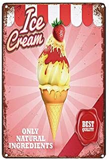 Plaque murale en métal vintage avec motif crème glacée - Décoration murale - Art classique - Cadeau créatif - À suspendre - 20 x 30 cm