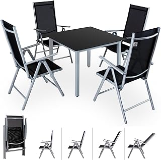 Casaria Salon de Jardin Aluminium Argent »Bern« 1 Table 4 chaises Pliantes Plateau de Table en Verre dépoli Dossier réglable 7 Positions