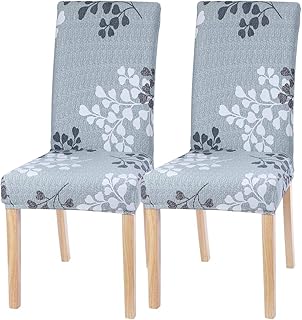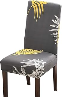 DOTBUY Housse de Chaise Extensible Universelle 1/4/6/10 pièces Amovible Lavable Moderne Couverture de Chaise pour Salle à Manger Décoration Mariage (Feuilles Blanches,6 pièces)