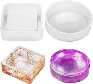 Daimay Lot de 2 moules en résine pour cendrier Ashtray Moule à arrosoir en silicone Moule en résine époxy, ciel en résine, forme ronde carrée en forme de larme en résine époxy
